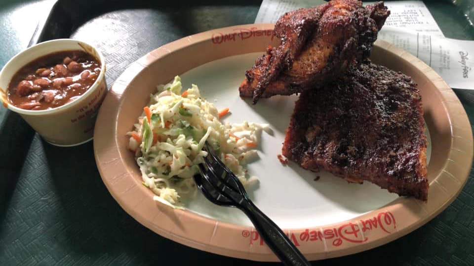 The moment we have all been waiting for: my number one on the fab five for quick service dining locations. At Animal Kingdom is where we find Flame Tree Barbecue. This is just off the main path in Discovery Island at the park. You can smell the barbecue as you approach it and in my opinion, it is some of the best barbecue I have had. Serving ribs, chicken, pulled pork, salads, and macaroni and cheese the stand has much to offer for all ages. They have kids options of hot dogs and a chicken drumstick in case they do not like barbecue foods. The stand also has some good plant based and allergy friendly options so there is something for everyone. My favorite here is the chicken and rib combo platter. The platter comes with baked beans and coleslaw and is a good amount of food. They also have a couple of different barbecue sauces to try but the rub on the food is good enough to eat alone. I suggest getting the sauce and trying it in every combination possible. There is a lot of seating around this area, so do not worry, you can sit back and enjoy.
