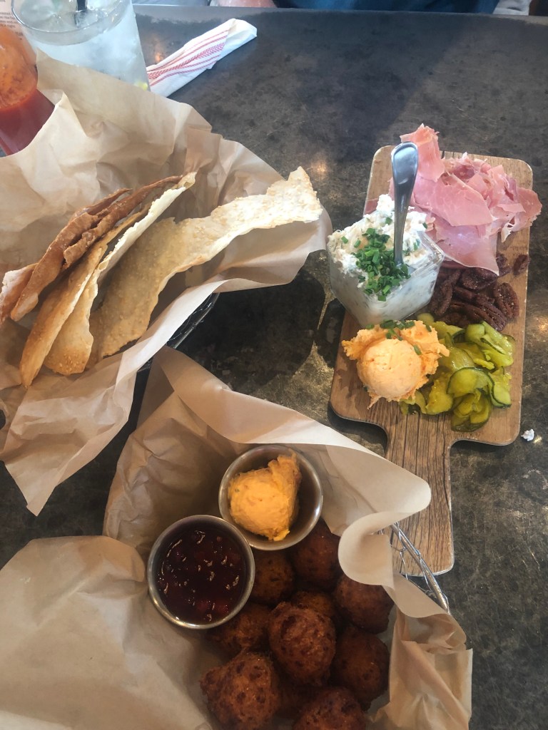 Moving on to the appetizer, the appetizer we ordered was the The Jasper Board. We after the fact then ordered The Punch of Puppies as well. The board was filled with smoked fish dip, pimento cheese, shaved country ham, bread and butter pickles, candied pecans, and buttermilk crackers. This was a nice way to get into their version of the charcuterie board. The dips were good and it had a nice variety of foods to try. My favorite on the board was the pimento cheese and the candied pecans. It was a nice appetizer for a group and it has things everyone will enjoy. The hush puppies were very good as well and came with the delicious pimento cheese spread and a very sweet and spicy red jalapeno jelly. They added a nice sweet heat and cheesy goodness to the hush puppies. I would order both appetizers again.