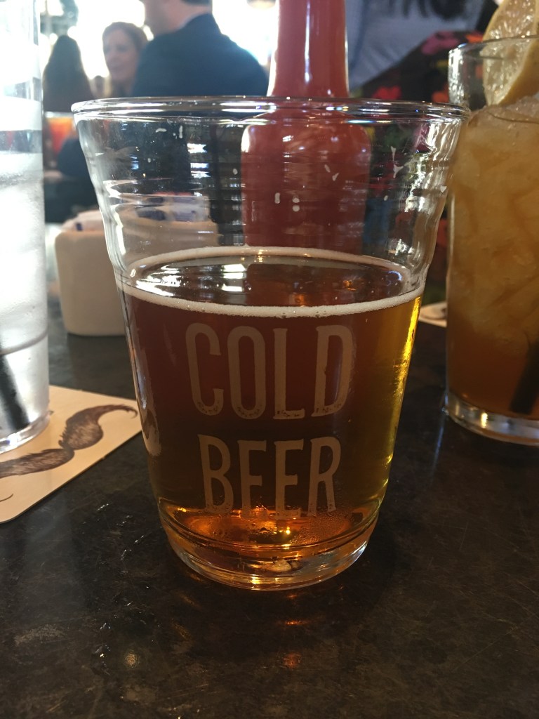 Now to the first part of the meal, drinks. If you are 21 and older there are so many options to choose from. If you are not 21, they carry all the classic pop and lemonade options you can normally get at restaurants. They also have a great iced and sweet tea, so I highly recommend that. I mean who does not like some sweet tea while sitting down for a nice farm to table meal. We tried two drinks while dining. I had the Orange Crush American Wheat beer and Abby had the Sweet Tea Shine.