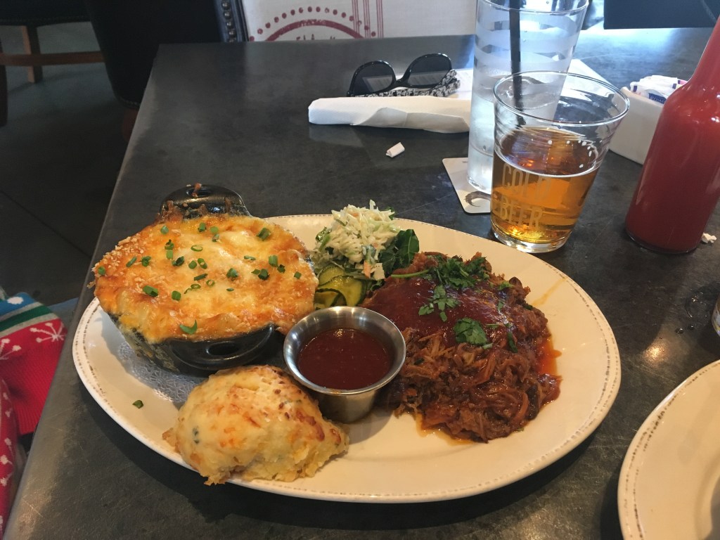 I ordered the Chopped Pork Barbecue Plate and that came with the mac and cheese, southern slaw, and the cheddar drop biscuit. This was a huge portion and everything tasted amazing. The pork was tender and the sauces added a nice flavor to elevate the dish. The mac and cheese was super cheesy and creamy with the nice bubbled cheese on top. The dish could have ended there but the slaw and the biscuit added even more and each component was delicious.