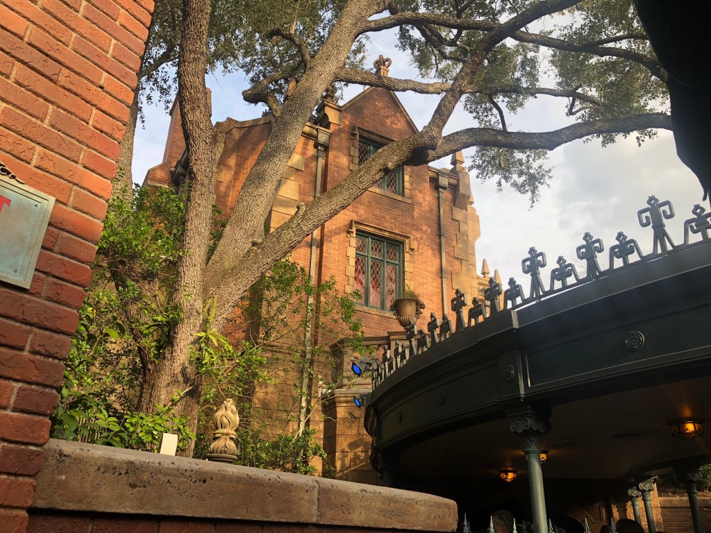 “Welcome Foolish Mortals”, to our first line queue. Coming in as number five is the eerie green awning leading up to a spooky mansion. As you walk up to the mansion, you start to hear the ominous music, you see a horse pulled hearse, and you start to feel spooked. As you walk up, you enter into an interactive garden area of the queue. This has some tombstones and interactive games that are fun to read and take part in. Make sure you try to find the bride’s engagement ring that is hidden. As you continue on into the ride, you come into a foyer and the theming is on point. This ends the queue as you enter the stretching room. The spooky lights and cobwebs add to it all and you find yourself on the ride. The interactive muder mystery and little riddles on the tombstones add to the haunting fun that lies ahead.
