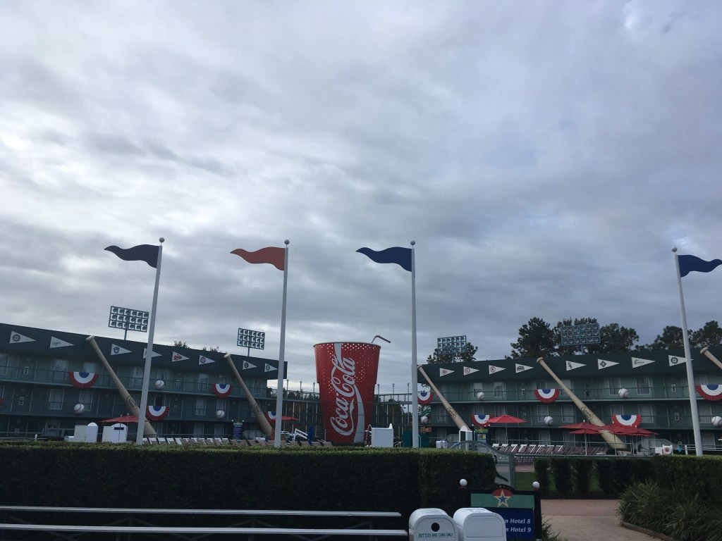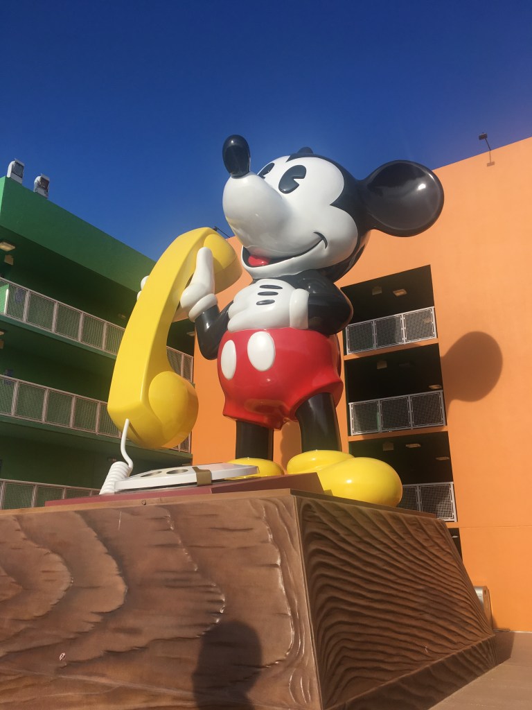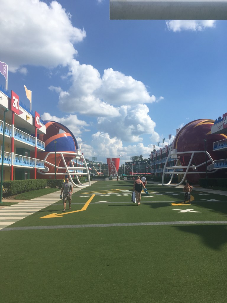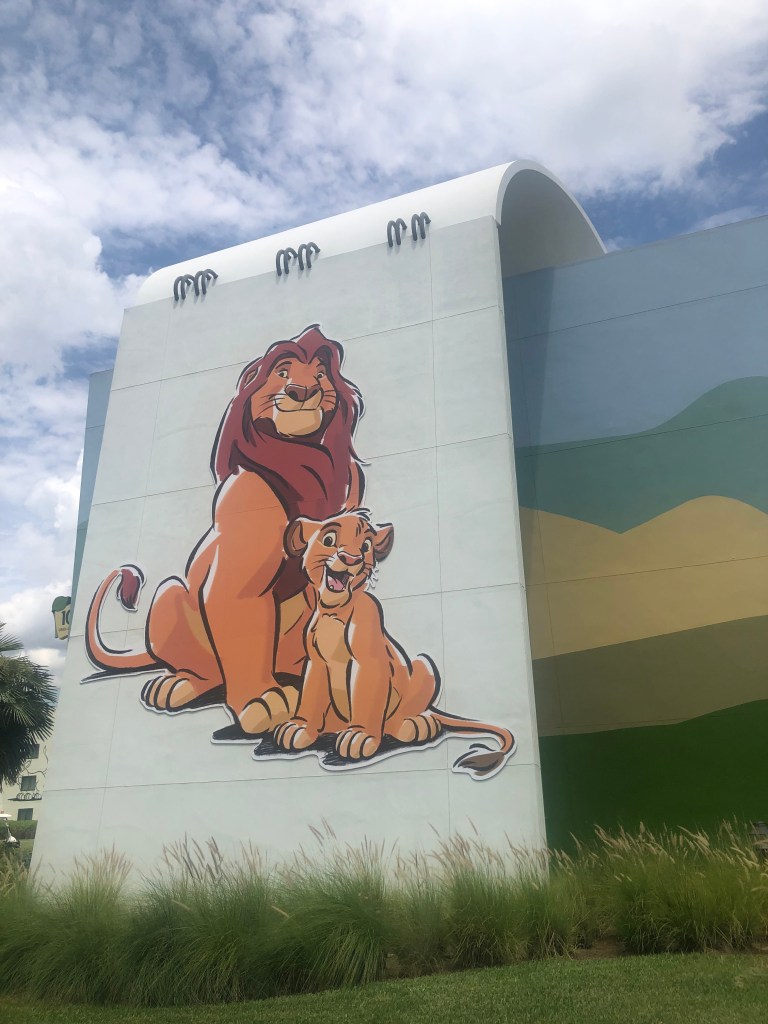 All of the Disney Value Resorts have very fun themes. The outside of the resorts are themed well, the sections of the hotel rooms are themed well, and the pools are themed well. Take All-Star Sports for example, the baseball section is made to look like bleachers and has the biggest cup of coke you could imagine. Now heading over to All-Star Music and you can find a giant jukebox or a guitar shaped pool. If you head over to All-Star Movies, you can find giant figures from some of your favorite movies. These themes are just the start. Art of Animation takes the themes to the next level. Whether you stay in the Little Mermaid rooms, the Lion King Suites, the Cars Suites, or the Finding Nemo Suites, you are right in the middle of the action. Abby and I have stayed in the Lion King Suites and the theming is awesome. I mean you find yourself laughing at the face of danger right there in the Animal Graveyard (hahaha!). Even the pools are themed well and you can see that best at the Big Blue Pool- the Finding Nemo themed pool. My favorite area at Art of Animation is the Cars section of the resort. You are in the middle of Radiator Springs and it has never felt more perfect. Pop Century is another resort that is themed like crazy. If you are like me, you had a Mickey phone. This one was popular in the 80’s and 90’s and it can be found as a mega sized phone outside some of the resort rooms. It is a fun way to transform through the years of the resort. Your kids will love these themes at all of the Value Resorts and if you are looking for “in your face Disney”, these are the resorts for you. Some photos are above for reference on how cool they really are.