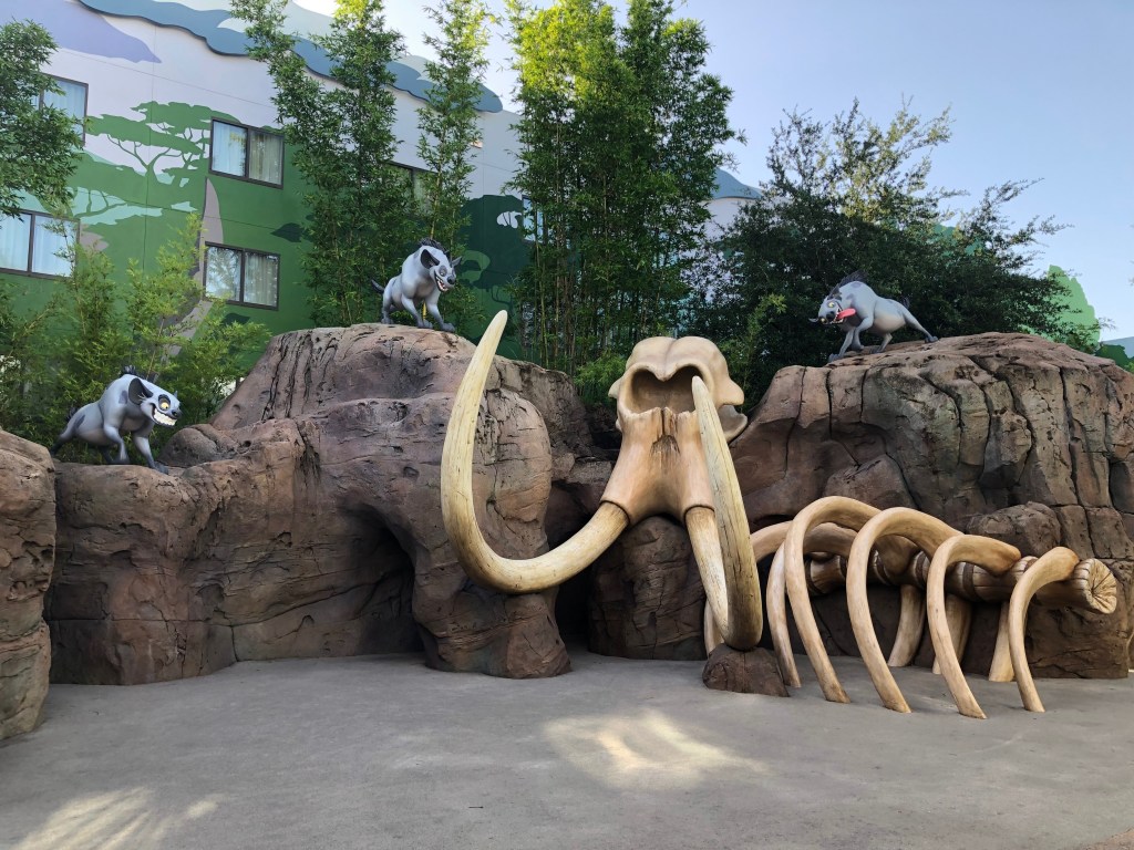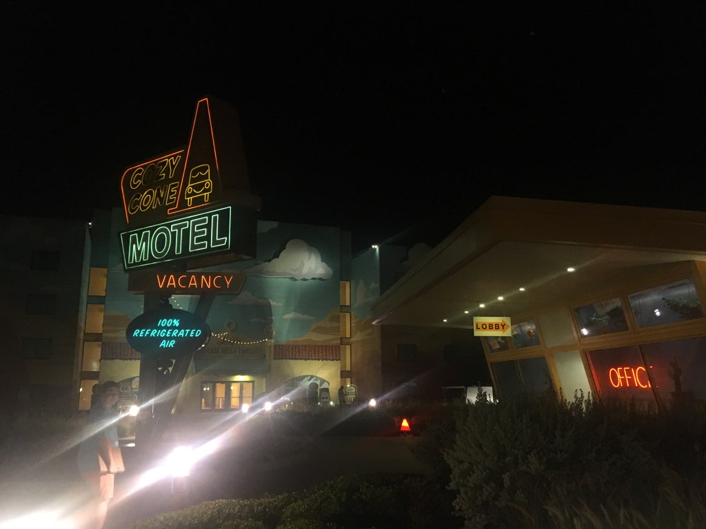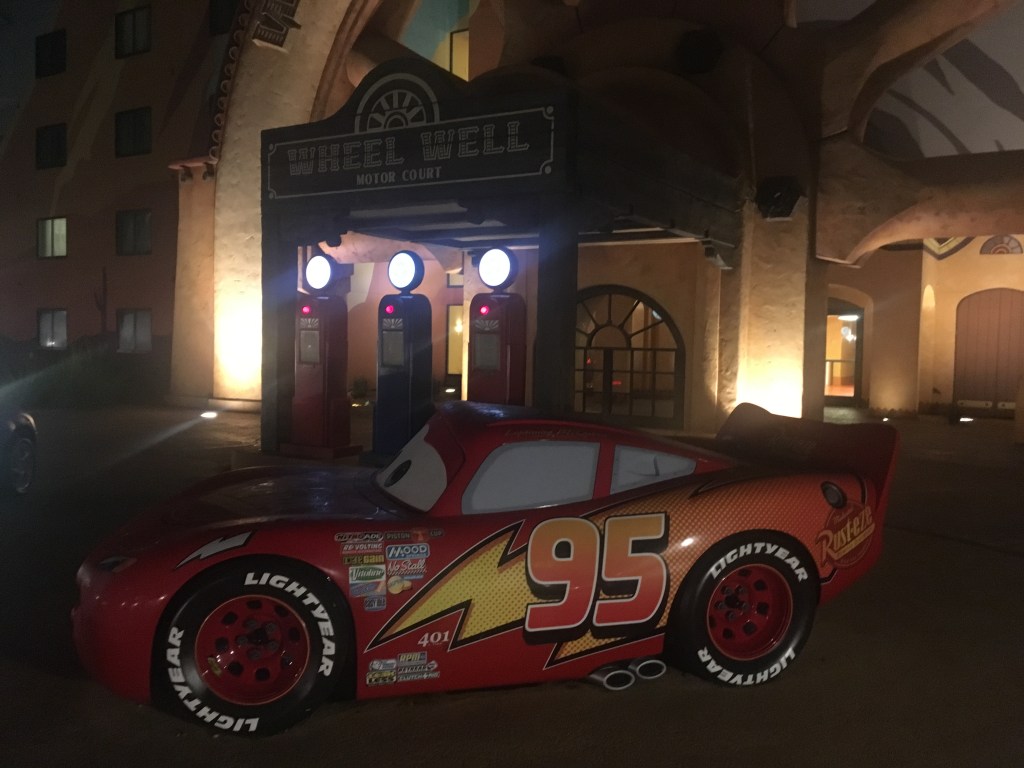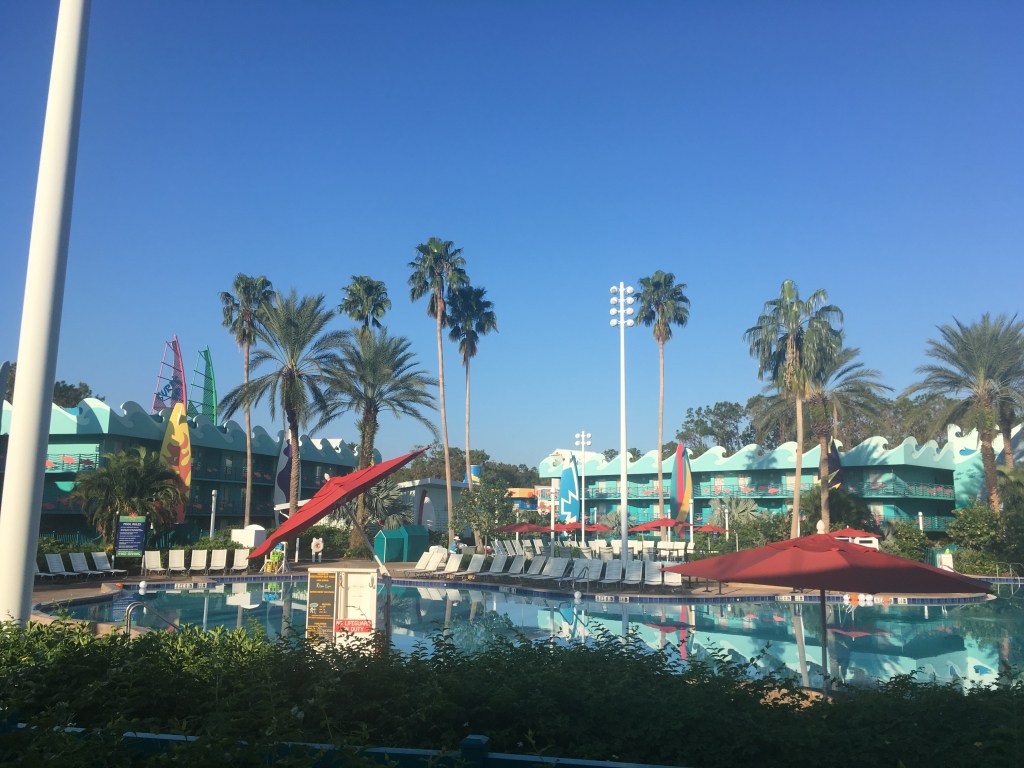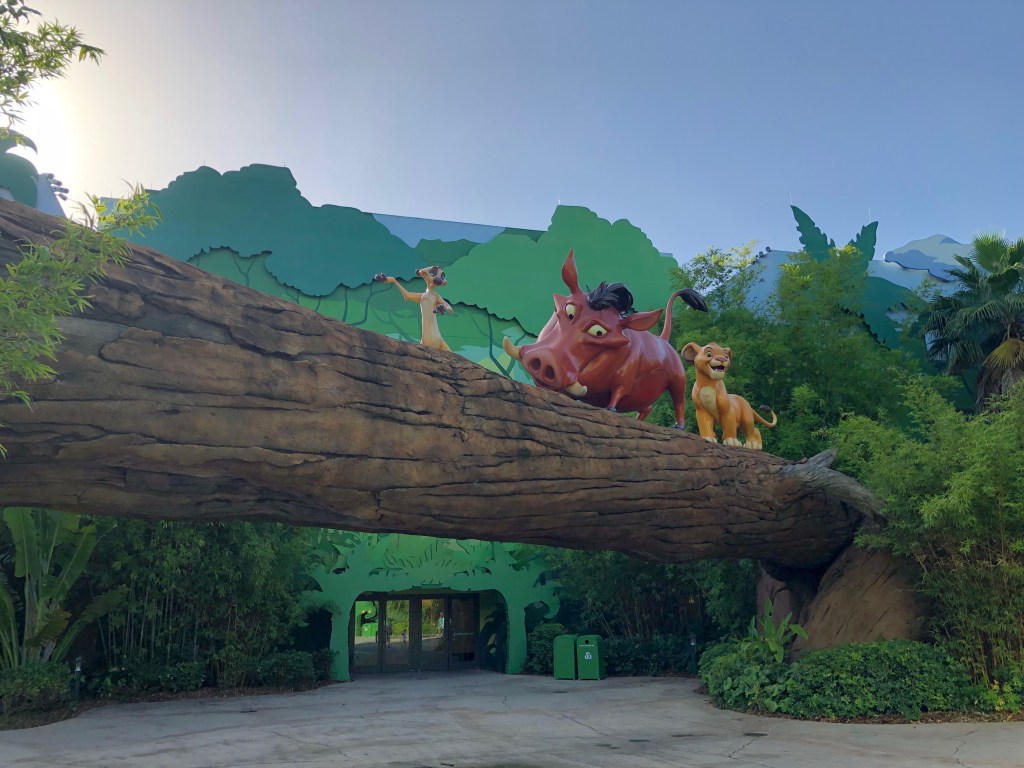 All of the Disney Value Resorts have very fun themes. The outside of the resorts are themed well, the sections of the hotel rooms are themed well, and the pools are themed well. Take All-Star Sports for example, the baseball section is made to look like bleachers and has the biggest cup of coke you could imagine. Now heading over to All-Star Music and you can find a giant jukebox or a guitar shaped pool. If you head over to All-Star Movies, you can find giant figures from some of your favorite movies. These themes are just the start. Art of Animation takes the themes to the next level. Whether you stay in the Little Mermaid rooms, the Lion King Suites, the Cars Suites, or the Finding Nemo Suites, you are right in the middle of the action. Abby and I have stayed in the Lion King Suites and the theming is awesome. I mean you find yourself laughing at the face of danger right there in the Animal Graveyard (hahaha!). Even the pools are themed well and you can see that best at the Big Blue Pool- the Finding Nemo themed pool. My favorite area at Art of Animation is the Cars section of the resort. You are in the middle of Radiator Springs and it has never felt more perfect. Pop Century is another resort that is themed like crazy. If you are like me, you had a Mickey phone. This one was popular in the 80’s and 90’s and it can be found as a mega sized phone outside some of the resort rooms. It is a fun way to transform through the years of the resort. Your kids will love these themes at all of the Value Resorts and if you are looking for “in your face Disney”, these are the resorts for you. Some photos are above for reference on how cool they really are.