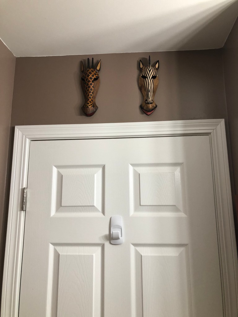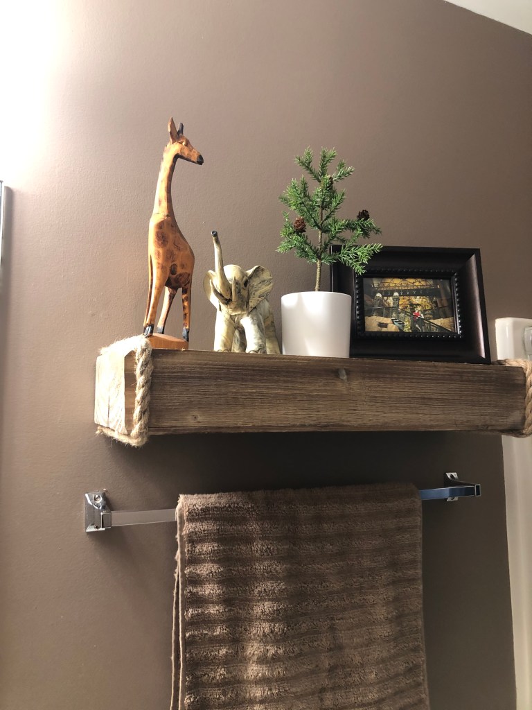 On theme with the rest of the place, we decided to dedicate a room to Animal Kingdom Lodge. Abby had some nice things from the lodge and we decided to dedicate the guest bathroom to be all themed. We had some nice engagement photos taken at Disney’s Animal Kingdom Lodge as well as the Peoria Zoo. These are nice additions to the bathroom to fill some wall space. On the shelf are some nicknacks and animal trinkets to add some fun ambiance with the signs and Animal masks. You do feel as if you are at the lodge with the theme and it is a fun way to add such an important time in my wife’s life to our home.