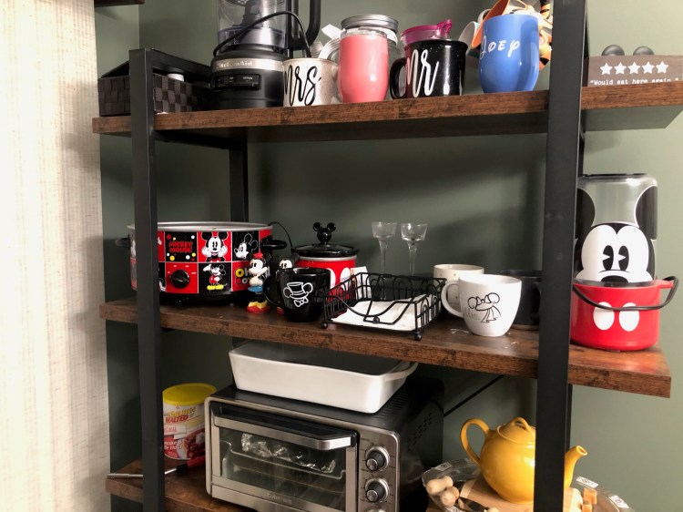 Continuing on into the kitchen, we have so many different Disney touches but we will keep it short. We have some Disney appliances like a crock pot, a popcorn maker, mugs, a waffle maker and so much more. These are so fun to display and use as it adds an extra smile. Disney kitchen supplies are so easy to find and we have a ton, but one thing remains, the magic is in every room here and we could not be happier.