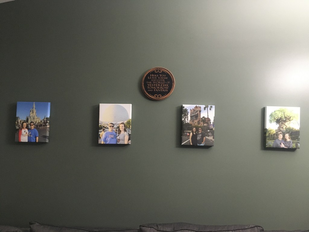 Welcome back readers to another episode of Muting and The Mouse. This post is going to change the pace from some of the others I typically post. I was thinking that I always talk about escaping into the magic, no matter how far. Well, that is just what we are going to talk about today. In the past, we have escaped into the magic by looking at reviews of the parks, restaurant, rides, shows, and so much more. Well, the magic can come home too. This can take many forms. You can enter into the magic of Disney in many ways and everyone has their go to. You can watch Disney movies, spend hours on Disney Plus watching all of the content, watch Youtube videos from the parks, listen to Disney music, and make your favorite Disney meals. Well, let’s be honest, we most likely do all of the above, but today we will talk about how we escape into the magic by decorating our home with Disney touches. There are so many options when it comes to decorating your home with Disney. For me, there is a lot of opportunity in our home when it comes to bringing Disney touches into it. You can start with photos, name the wifi, get kitchen appliances and tools, and even make your own items to bring Disney joy. We have a variety of all of the above in the Muting home. Now, we have some in your face Disney touches, but we also have some subtle Disney touches. Both are fun and both bring that Disney magic into everyday life. I mean the endless photos we have taken at Walt Disney World have to be used for something, am I right? I would like to introduce to you a little more about me in this post, so without further rambling, let me take you through our home and show you some of the Disney magic!