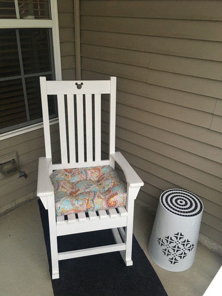 First off, we have some Disney as soon as you walk up to our home. My father-in-law provided us with a wonderful gift that allows a smaller Disney touch for us when we simply sit out on our front porch. We always wanted some rocking chairs to have on our porch. He made us some rocking chairs and they included a magical touch. He carved a Mickey into them and it is a nice touch to give you that extra smile and touch of magic to such a staple item for the porch. It is these types of things that get you to escape into the magic and the subtle touches we absolutely love. Such a thoughtful gift to give us the feeling of Disney.