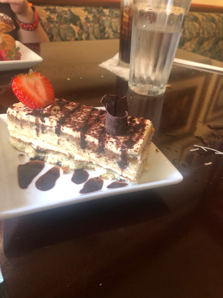 Abby decided to get the ravioli and I decided to get the Italian Trio for the main course. First up, the ravioli. I mean, it is a little hard to mess up a classic- but this one was good. The sauce was delicious, the ravioli was cooked nicely and the cheese filling was good as well. The ravioli was topped with some grilled chicken which was really tender and delicious. A nice addition to the dish was that it was also topped with balsamic glaze and red blistered tomatoes. The portion was nice and it made for a satisfying lunch. The Italian Trio was next. This consisted of Fettuccini Alfredo, Chicken Parmesan, and the regular spaghetti. Sometimes they offer baked mostaccioli on this and I am sure that is good. I do wish that was the case for my dish, but I was happy with my trio. They offered a good spread of all of your favorite Italian dishes. My least favorite was the regular spaghetti. The alfredo was good and had a nice sauce on it. My favorite of all was the chicken parmesan. Now, maybe I am biased because it is naturally my favorite, but I would recommend it. The entrees were good and fun to share, but we did have to save some room for dessert.