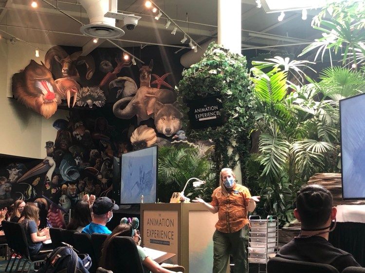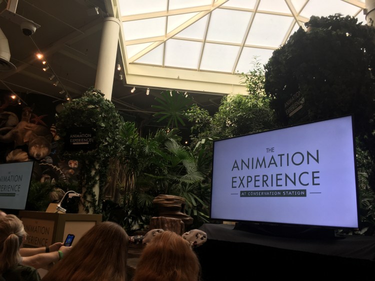 Located at Disney’s Animal Kingdom Park, it might be a little tricky to find. Never fear, when all else fails, type it into the My Disney Experience App and you can get directions or a location. Or keep reading (I like that option best, LOL). As you walk through Harambe Village in Africa, you come across a train station. You are going to want to take this train station as it takes you to Conservation Station. This is where the Animation Experience is! As you board the train, it takes you through some areas and it is like seeing parts of a zoo. That is the best way for me to describe it. There are facts and sights to see on your way to this oasis. Once you disembark from the train, follow the walkway and you will come up to the building where the experience is located.