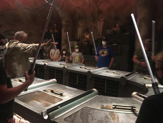 Welcome back friends to Muting and The Mouse! We are heading back to Walt Disney World Resort for this post. The beauty of the resort is that no matter where you are in the parks, it is super well themed. We are going to escape into the magic of Disney’s Hollywood Studios for a must do for the big Star Wars fans. As you head into Star Wars Galaxy’s Edge, you really enter the story, and that is what the magic is about today. I was blessed and able to have gotten a time slot to build my own lightsaber. You can get this experience at Savi’s Workshop found in Galaxy’s Edge. I was also blessed to accompany some friends on this past trip and experience it again to purely enjoy what was happening. I had chills both times and if you are okay with fronting the bills over for this once in a lifetime experience, it is a must. The price of the experience was just raised to $219.99. This includes your custom hand built lightsaber and the once in a lifetime experience to make it. For me, yes, it was worth it. I had a blast and it was everything I thought it would be. Take into consideration that lightsabers are in the $170 ish range and the fact you get a custom one with a personal experience- it all adds up. To me, that was worth it! But before I ramble too long, let’s dive into some of the experience to let you know what to expect!