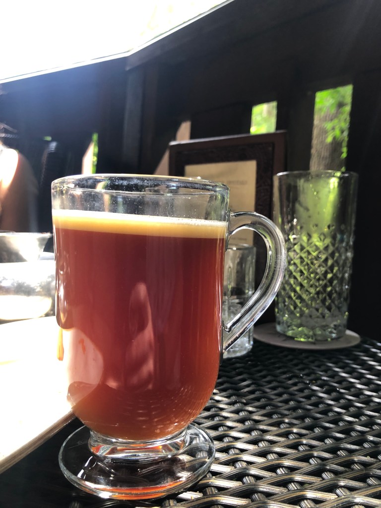 We each ordered two drinks over the duration of our lunch. First up I had ordered the “Tempting Tigress” (first photo above). This consisted of Russell’s Reserve 10yr Bourbon, St. Elizabeth Allspice Dram, Tamarind Syrup, and Lime Juice. I like a good bourbon drink and this one did not disappoint. The drink was super smooth and not too heavy. The perfect combination for a bourbon drinker like myself. If you like bourbon, I highly recommend it. Abby ordered the Annapurna Zing (second photo above). This was made up of Bombay Sapphire Gin, Passion Fruit Purée, Mint, Simple Syrup, and Lime Juice topped with Ginger Beer and a glowing Lotus Flower. The drink was a very tropical type drink. A crowd favorite and is one that was easy to drink. Abby really enjoyed it. The second drink I had ordered after our lunch had come was the Mustang Coffee (fourth photo above). This was an interesting drink but one I very much enjoyed. It was made of Crown Royal, Brown Sugar, and Butter with hot Coffee. If you like coffee, you will like this drink. Tough to drink on a warm day, but was still good. The second drink Abby chose was the Dalang’s Delight (fifth photo above). She chose this for the tea element. The waitress had mentioned it was not what you would think it was. It is more of an earthy tea flavor. Abby said it was not bad but not something she would order again. Overall, the drinks were all good and we were glad we were able to try some different ones.