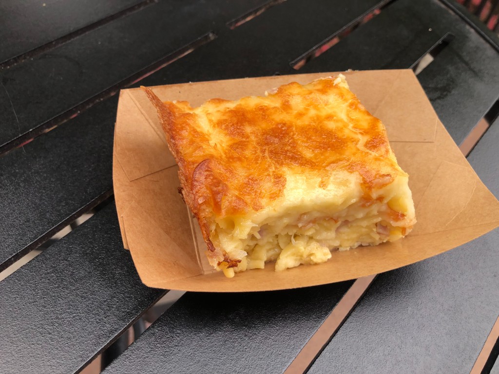 Number two on the crawl was the Schinkennudeln. This is basically a baked mac and cheese amped up. The passport describes it as pasta gratin with ham, onions, and cheese. This was so cheesy and the ham added a nice salty flavor that cut through the rich and heavy cheesy pasta. This never lets us down as it is a returning item and we always enjoy it. Give this one a try in the future.