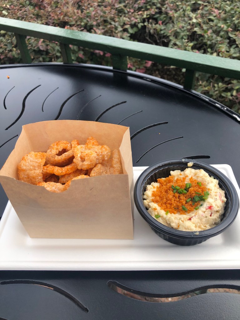 Number three is a new menu item this year and it had me perplexed. Based on what it is called I said “where’s the cheese”? But it was paired with a dip and that is where the cheese entered the dish. The Crispy Barbecue Pork Rinds were served with a creamy Pimento Cheese. This was not our favorite. The pork rinds were actually not bad but the pimento cheese was not what I was expecting. Overall, I enjoyed it and would give it another try. Something to note with dishes at the festival is they can be different from time to time.