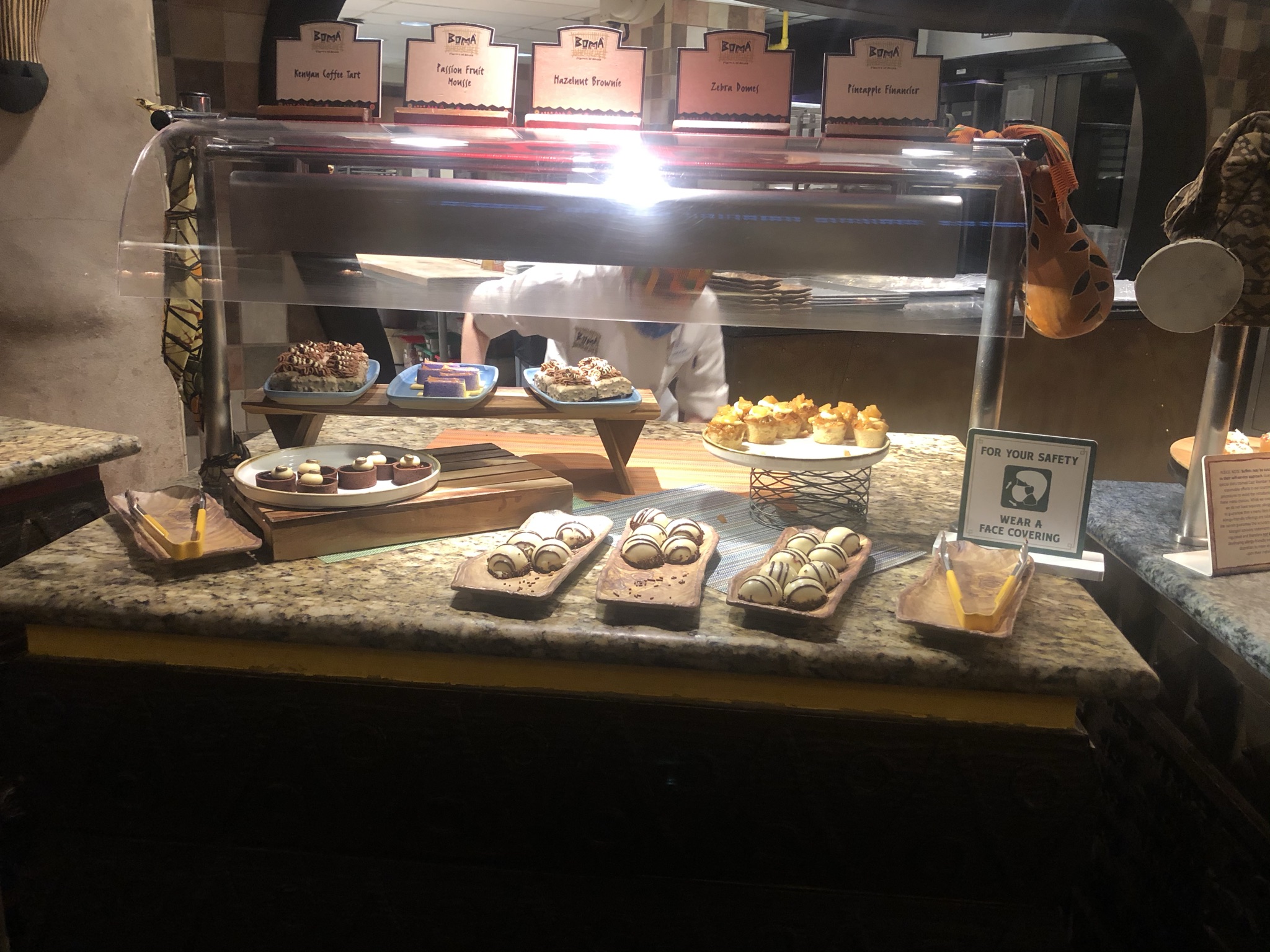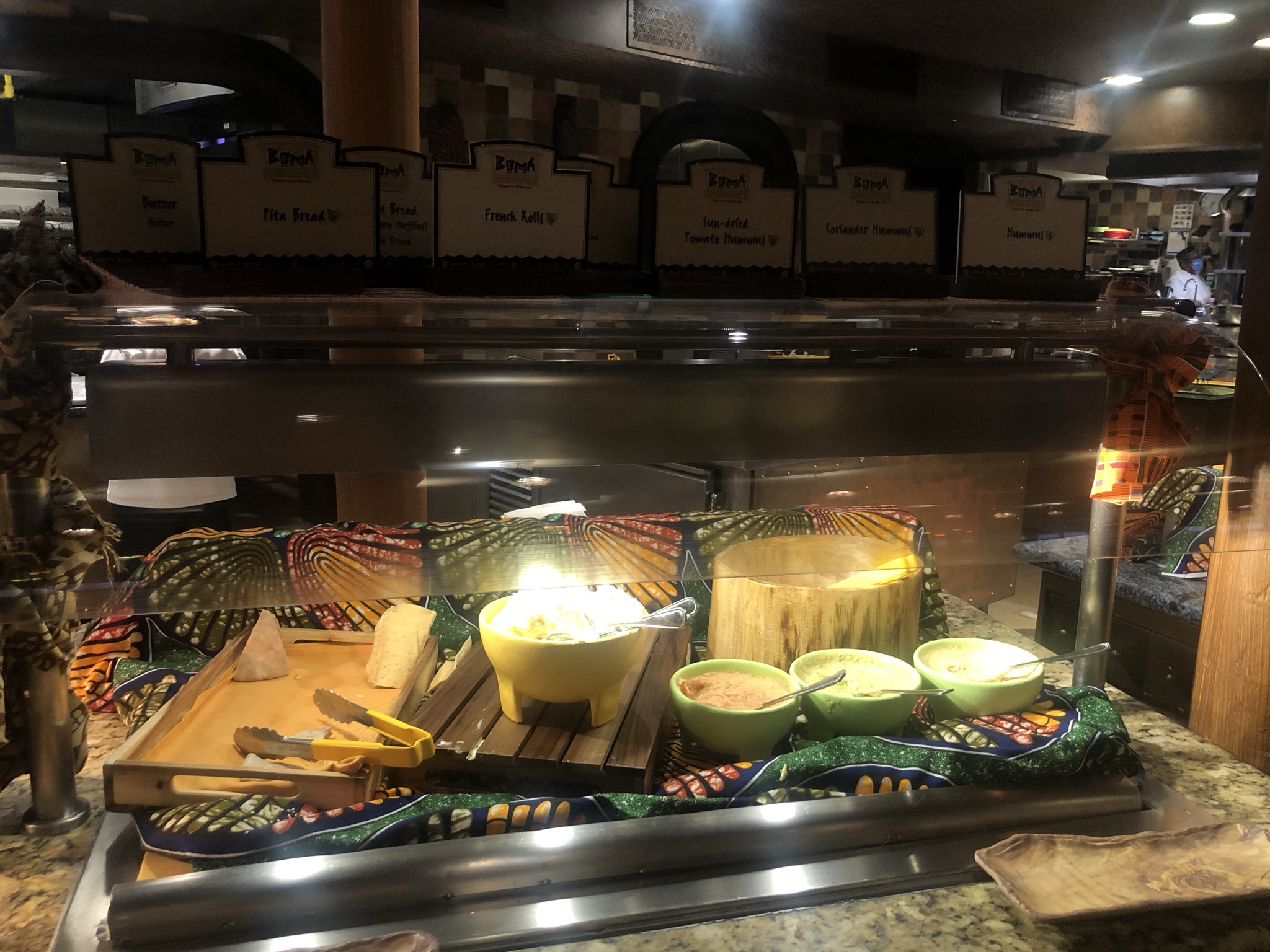 Happy New Year readers and welcome back to Muting and The Mouse. I hope you had a wonderful holiday season. We sure did enjoy taking it all in this year. There was so much magic in the air as we head into another adventure in 2022. With that said, we are going to start the year off right by getting back into the weekly posts. Our first post for the new year is a promised restaurant review. I know I know, week one and we are talking about food. Well, why not give you some choices at the beginning of the year! I had never eaten at Boma before and we were notified that on our last trip it would be opening again! This was a wonderful surprise as it was the one of the first buffets to open again at Walt Disney World. We had a reservation for the first night of our trip and we could not have been more excited! Let’s dive in!