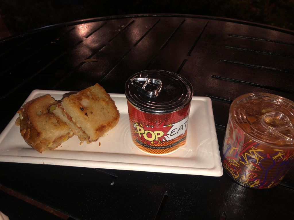 Coming in at number five is a simple classic dish that did not disappoint! The Tomato Soup with Bacon, Apple, and Brie Grilled Cheese was delicious! This dish is found at the Pop Eats stand. The soup was the perfect eating temperature and was the perfect velvety tomato soup. The grilled cheese was good. The bread was super crispy, the cheese was melty, but the apple was why this fell at number five. Overall, I loved the dish, but the apple threw me off. Really fun to try a new take on the grilled cheese and the dish worked! Plus, who doesn’t love the fun soup can!?