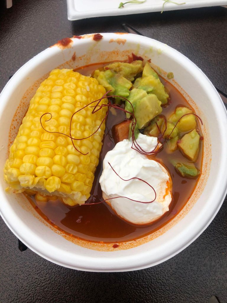 Moving on to the next dish, we are going to keep it going with the soups. At a new booth to the festival, this soup is found at the Encanto themed booth Vibrante & Vivido Encanto Cocina! This spicy soup consisted of Guajillo, Arbol Chili-Spiced Chicken, Potato, Avocado, Ear of Corn, and Creme-Fraiche on top. The soup was super good. The spice level punched through (which is big for Disney food) and the Creme-Fraiche and avocado added a nice cooling agent to the dish. This soup was a surprise to fall on this list. We were not going to order it, but boy did we enjoy it and we are super glad we tried it. The corn was lack luster, but the entire soup dish was one of the better things we ate the day we tried it. We might not want to talk about Bruno, but we will for sure keep talking about this soup!