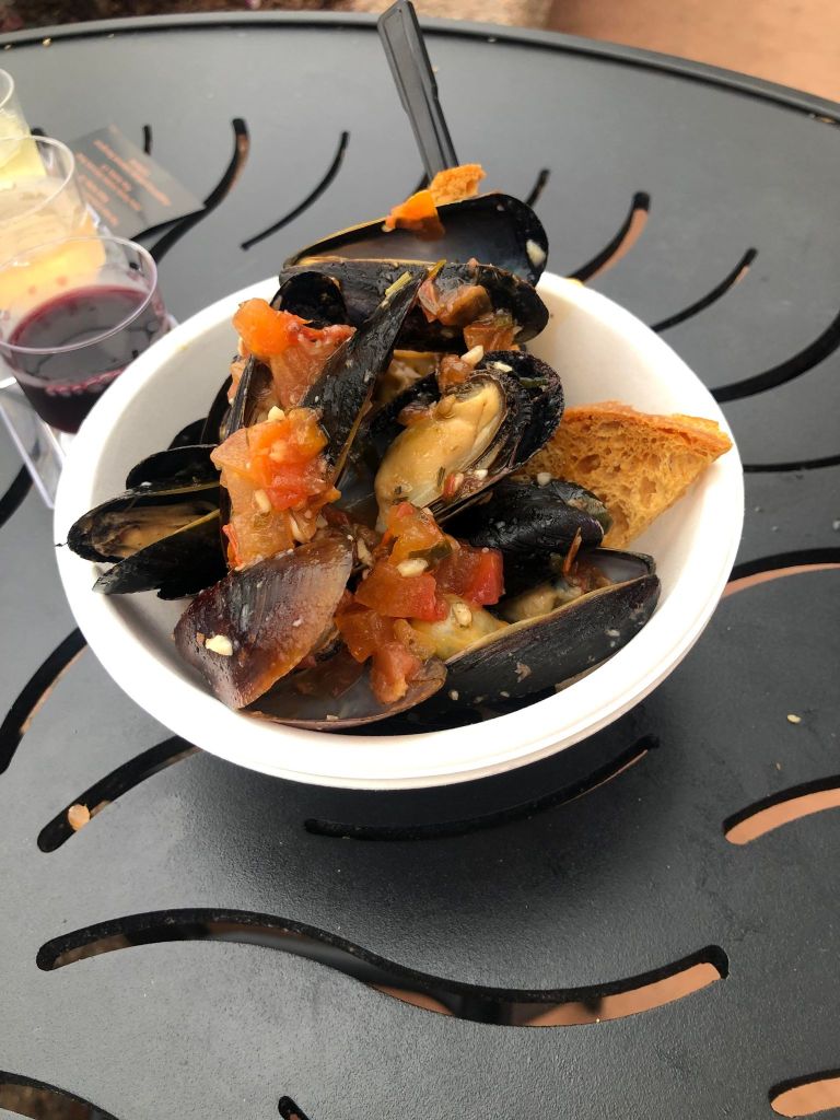 Moving on to the third best dish at the festival, was one I was very excited to get. This dish for the price is a huge reason it lands in the top three. I tried the mussels found at the new Craftsman’s Courtyard. I was nervous but excited to try these mussels because it can be very tough to not overcook them. These were scooped into a bowl and it seemed like they would not stop scooping the mussels into the bowl. There were so many! There were 15 of them and that seemed like so many compared to some of the other portions. They were topped with sautéed tomatoes and garlic. They did give you two crostini pieces as well. The mussels were pretty darn good. Close enough to perfectly cooked. But the amount of mussels for the price and how good they tasted has it at number three on the list!