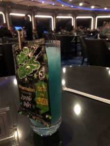 We started off with some drinks. I ordered The Nebula. This was their take on the Old Fashion and consisted of Maker’s Mark, Pineapple, Honey, Passion Fruit, Angostura Bitters, Moon Dust. If you like Old Fashions, this is one you would like. I would for sure order this one again. Abby ordered the kids non-alcoholic option. The drink she chose was The Moon Rocks. This was Coconut, Blue Cotton Candy Syrup, Lemonade, Moon Dust, and Moon Rocks and includes a pack of Space 220 collectible trading cards. The moon rocks were Pop Rocks and were super fun to add into the drink. It was sweet, but the sip I had tasted good. A fun alternative to a fun drink without the spirits that adults can enjoy.