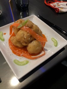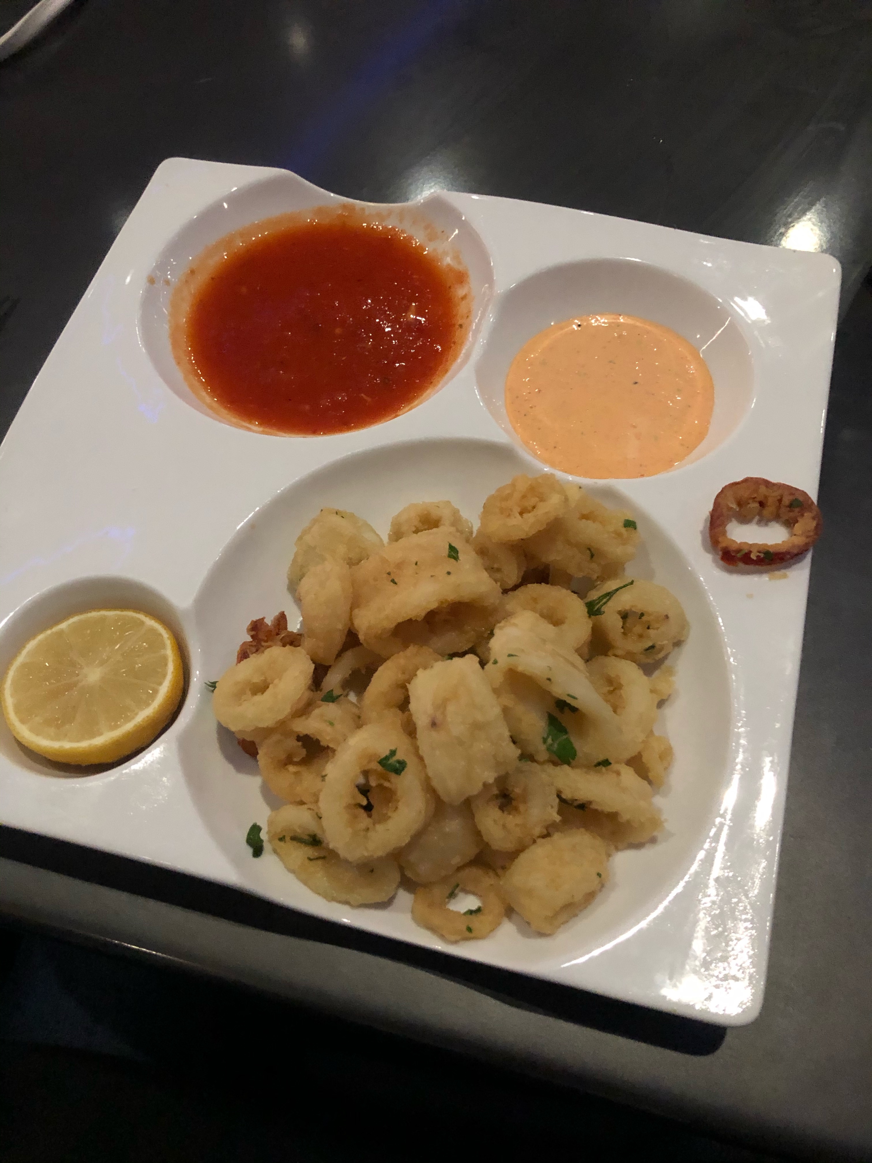 It was time to order and we knew what we wanted. We each got to choose an appetizer and I chose the Starry Calamari. This was your typical fried calamari with Italian Cherry Peppers. The sauces were Spicy Marinara, Roasted Pepper Citrus Aioli. The calamari was cooked very well and paired best with the Aioli. No complaints from me on the calamari and I would order that again in a heartbeat. Abby ordered the Blue Moon Cauliflower. This was Tempura Fried Cauliflower, Housemade Hot Sauce, and Blue Cheese Dust. Simpler terms, it was buffalo fried cauliflower. These were really good as well. It was a giant portion with really big cauliflower. Abby really enjoyed these as did I.